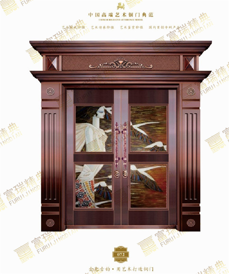 项目简介:重庆双开油画艺术铜门,铜艺与彩绘结合,我司已经申请专利