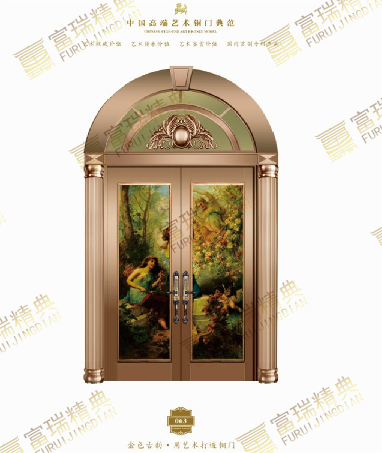 億彩项目简介:重庆双开油画艺术铜门,铜艺与彩绘结合,我司已经申请专利