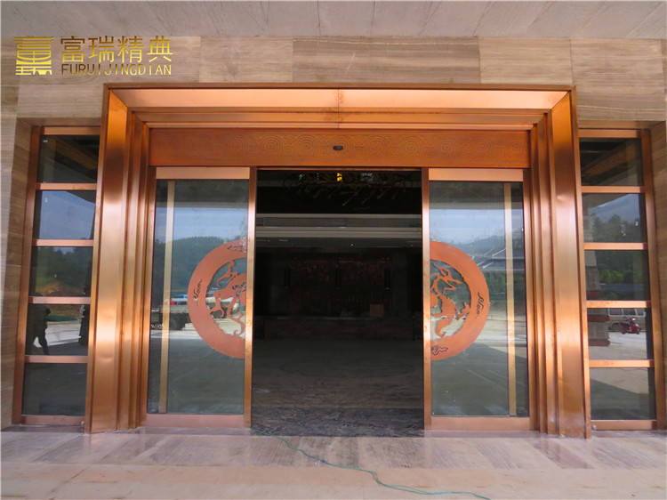 億彩材质:玻璃铜门、铜装饰、段铜浮雕
