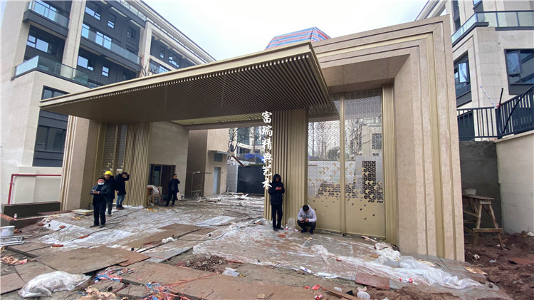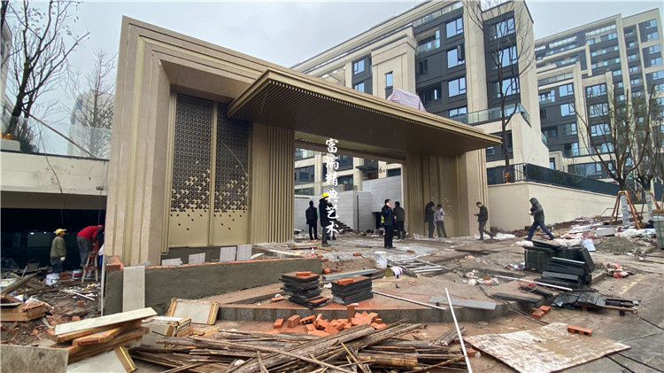 億彩材质:不锈钢仿铜门头、不锈钢装饰