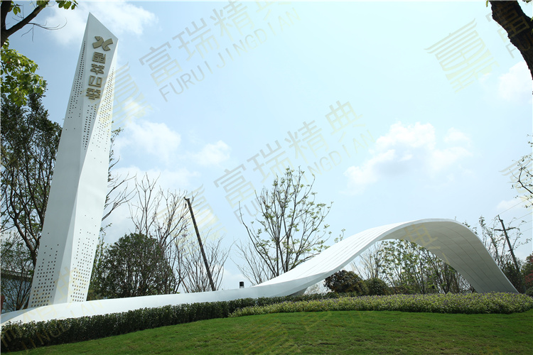 億彩材质:镀锌板构筑物、不锈钢雕塑