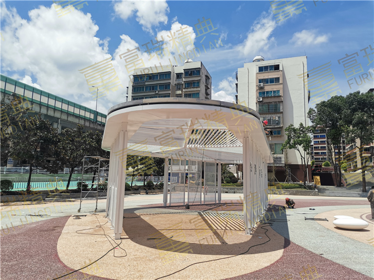 億彩业务范围:廊架格栅、景观凉亭、精神堡垒导视系统、亮化工程、金属装饰、异形构筑物等厂家,设计制作安装一体