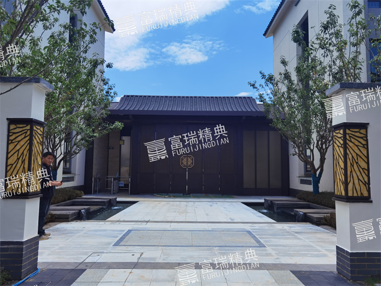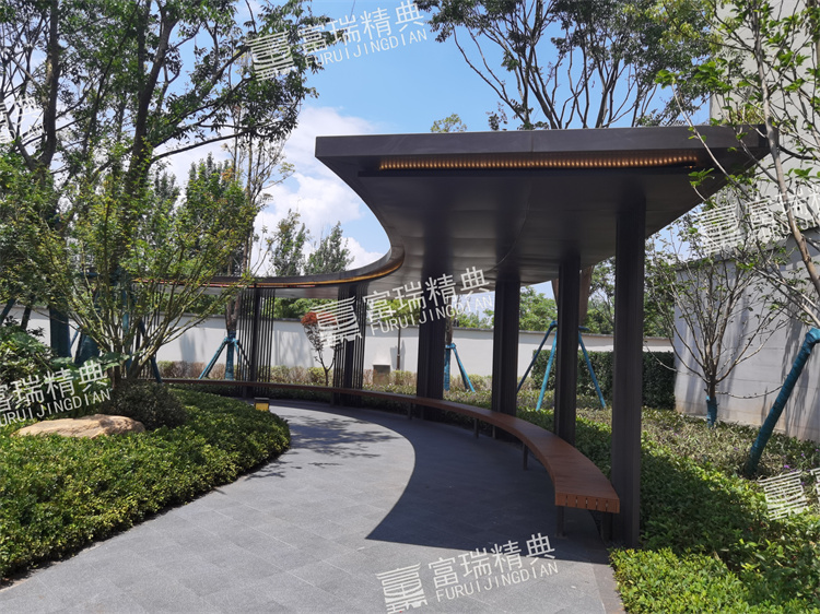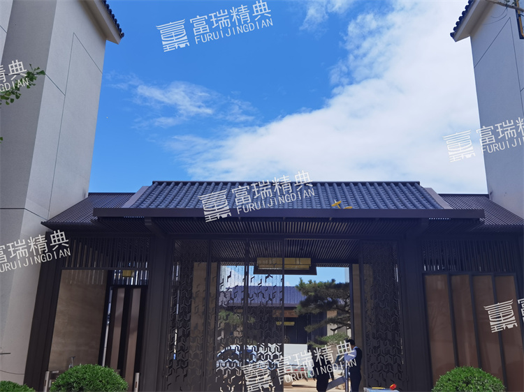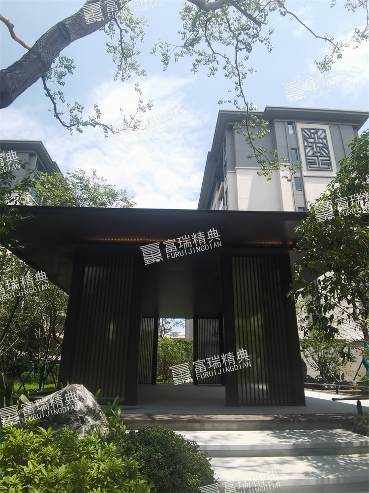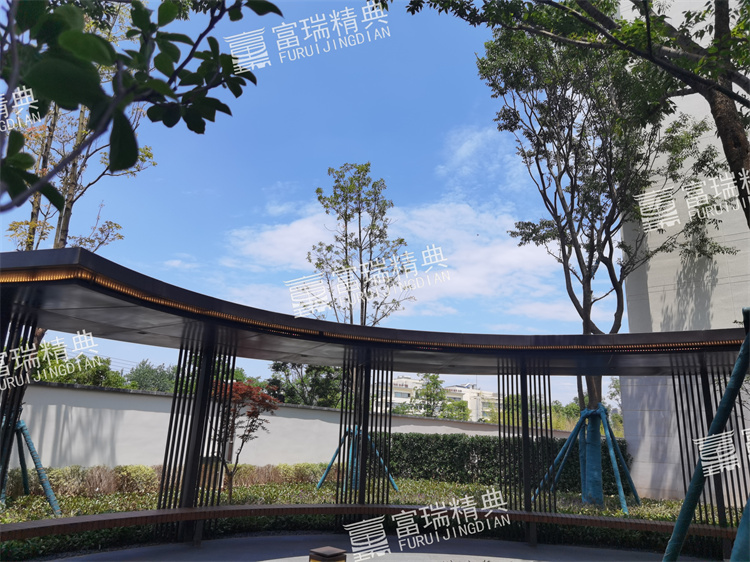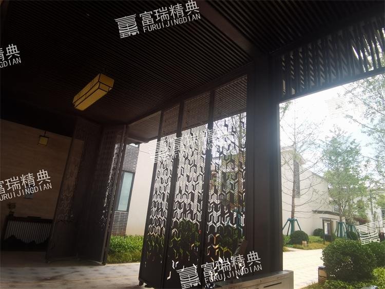 億彩材质:不锈钢廊架、不锈钢栏杆、新中式门头