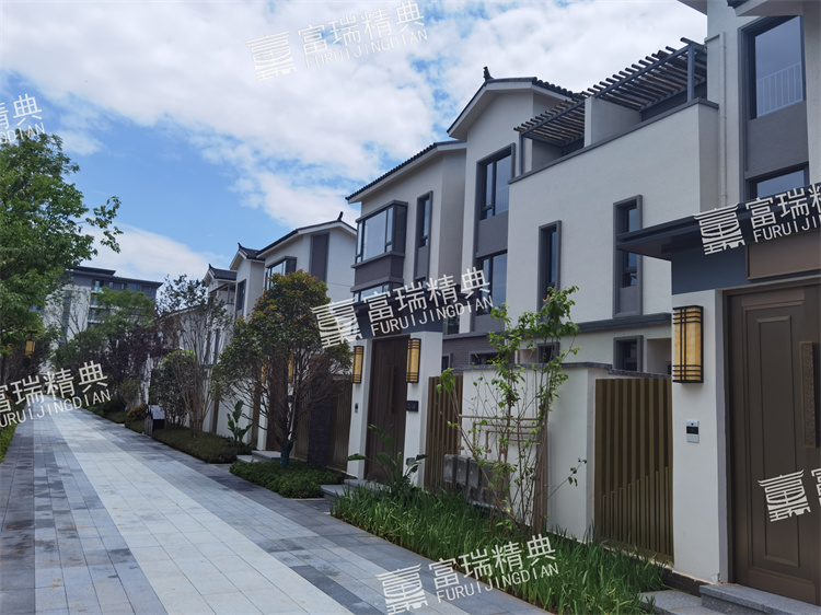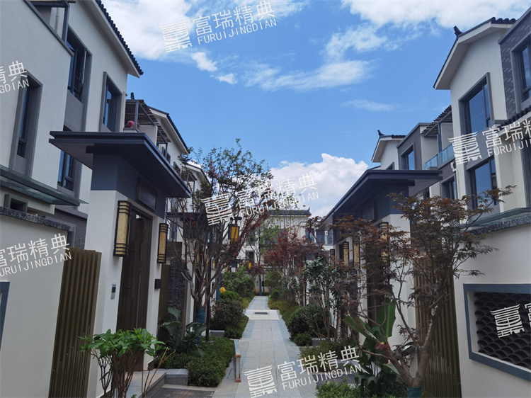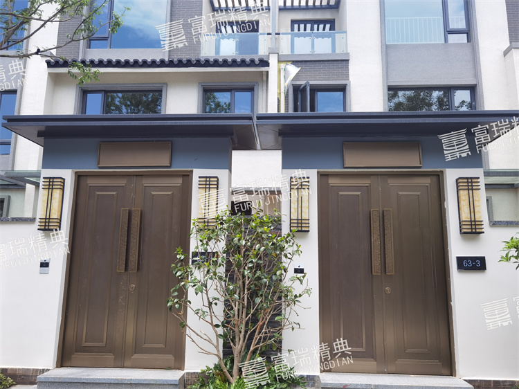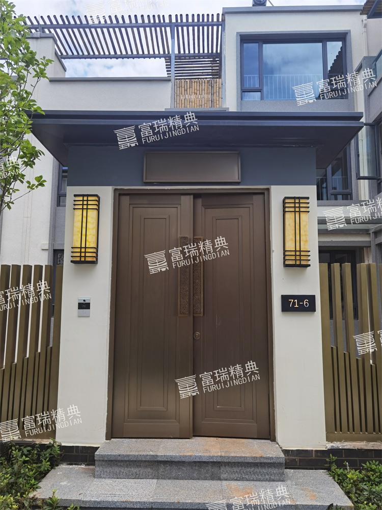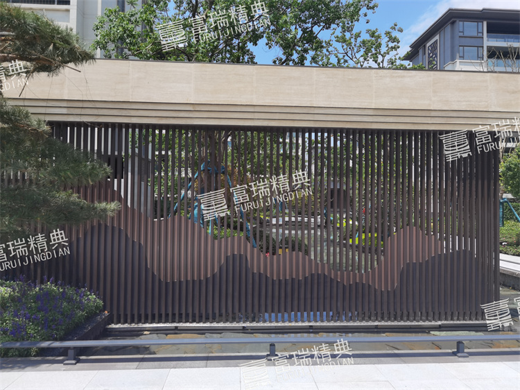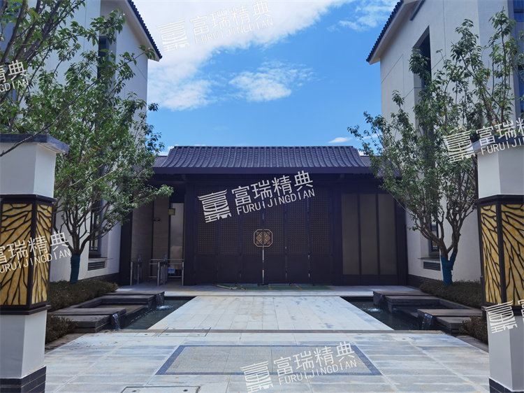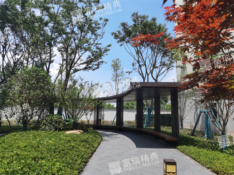 億彩材质:不锈钢廊架、不锈钢栏杆、新中式门头