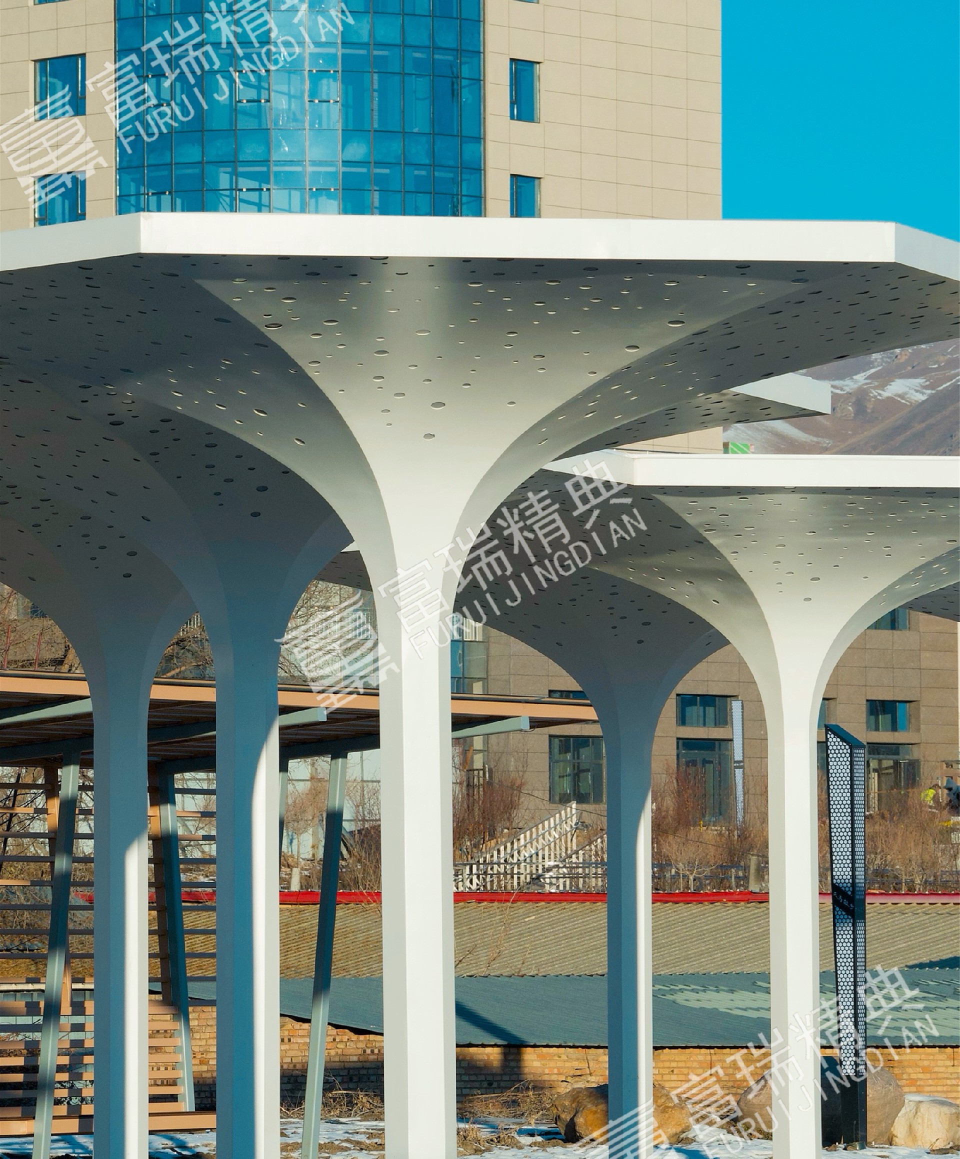 项目简介:新疆昭苏天马湖公园廊架景亭
