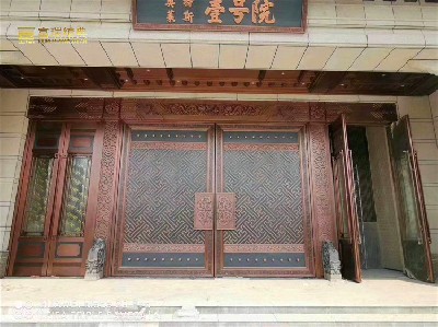 铜艺术作为一种古老的艺术,主要是通过浮雕、掏空、锻造后的图案和吉祥图案在铜门上使用。经典动图案有龙、虎、凤、龟四神兽和狮子、麒麟、鹿、鹤等,还有部分花草,或有文字装饰抽象图案,配合人们驱邪、祈福等美好愿望。大气高贵的铜门一直是别墅的首选,再加以搭配精致的铜装饰,古韵风、文化内涵气息的点缀,为铜门更增