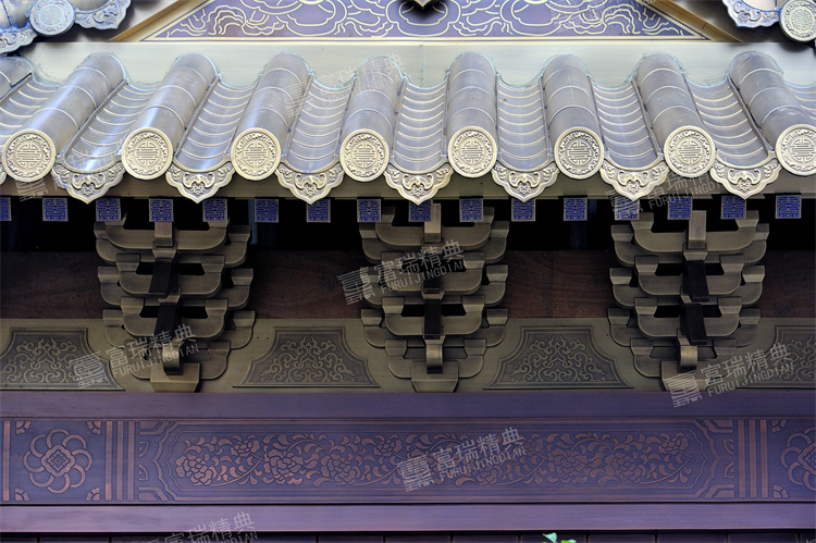 (5)铜斗拱安装,要保证翘、昂、斗等出入平齐,高低一致,各层构件结合严实合缝。
